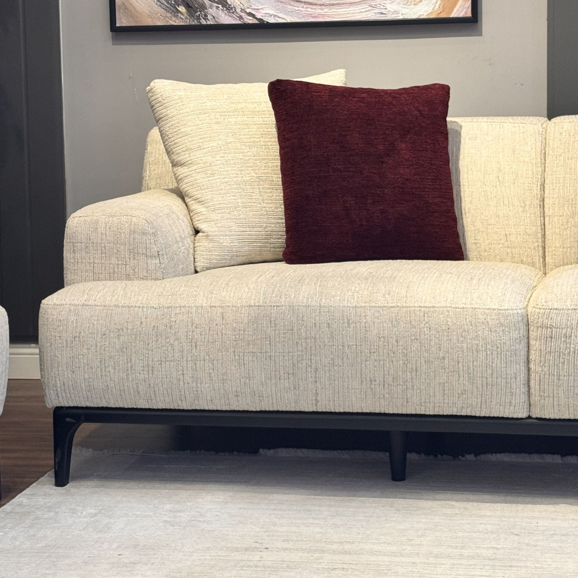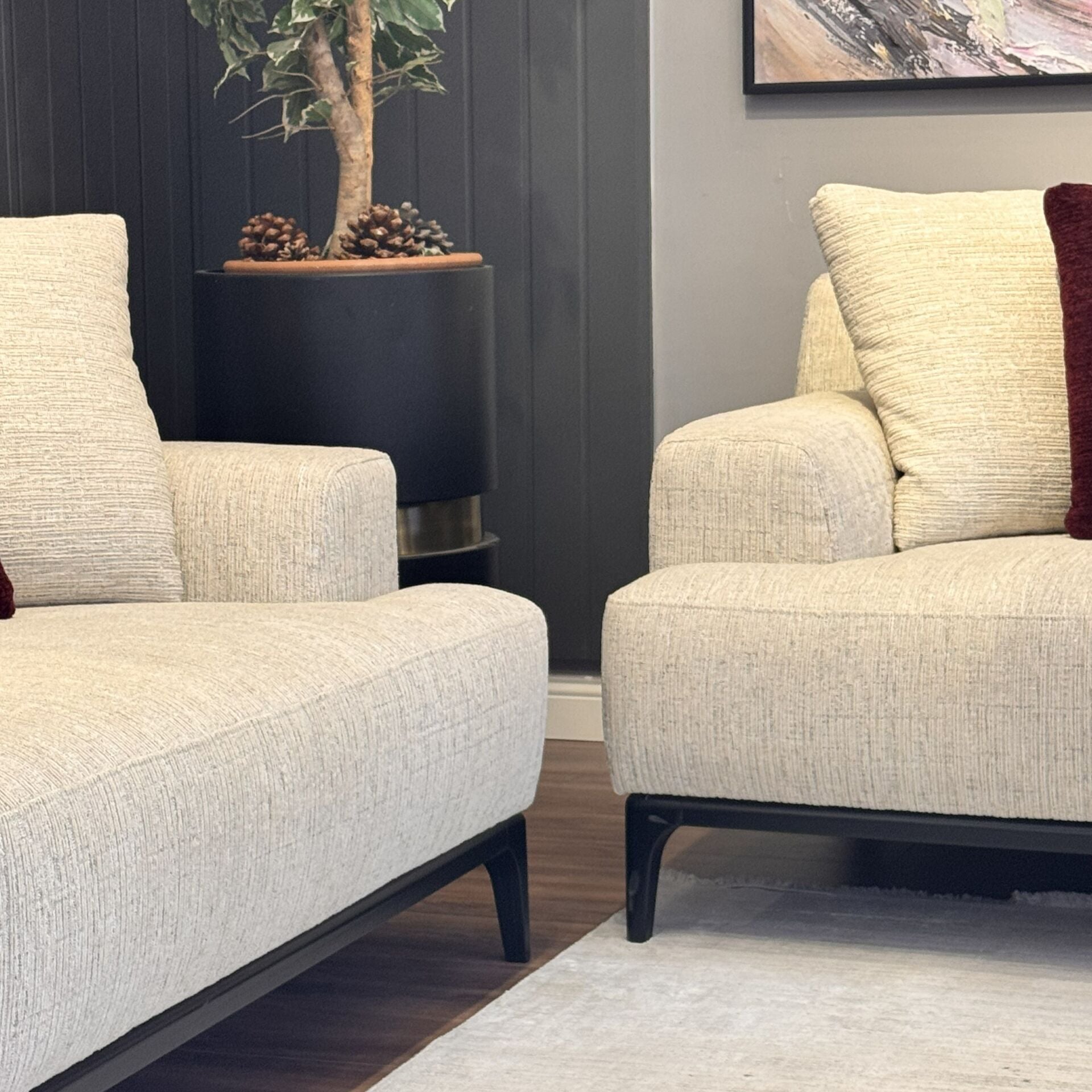 Geniş oturum alanı sayesinde konforu ön planda tutarken, zarif ayak yapısı