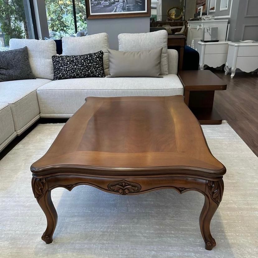 Klasik El Oyması Ceviz Kaplama Orta Sehpa