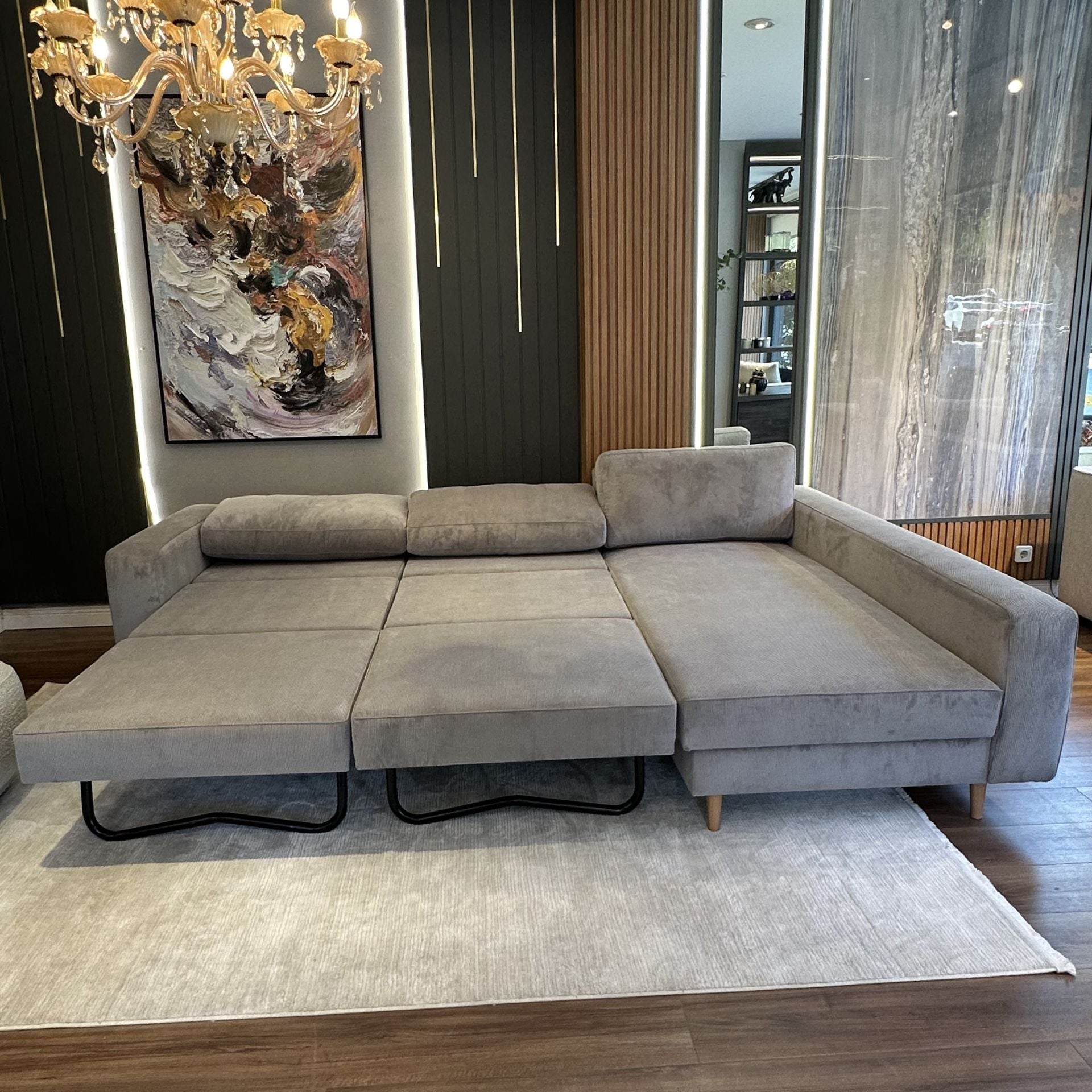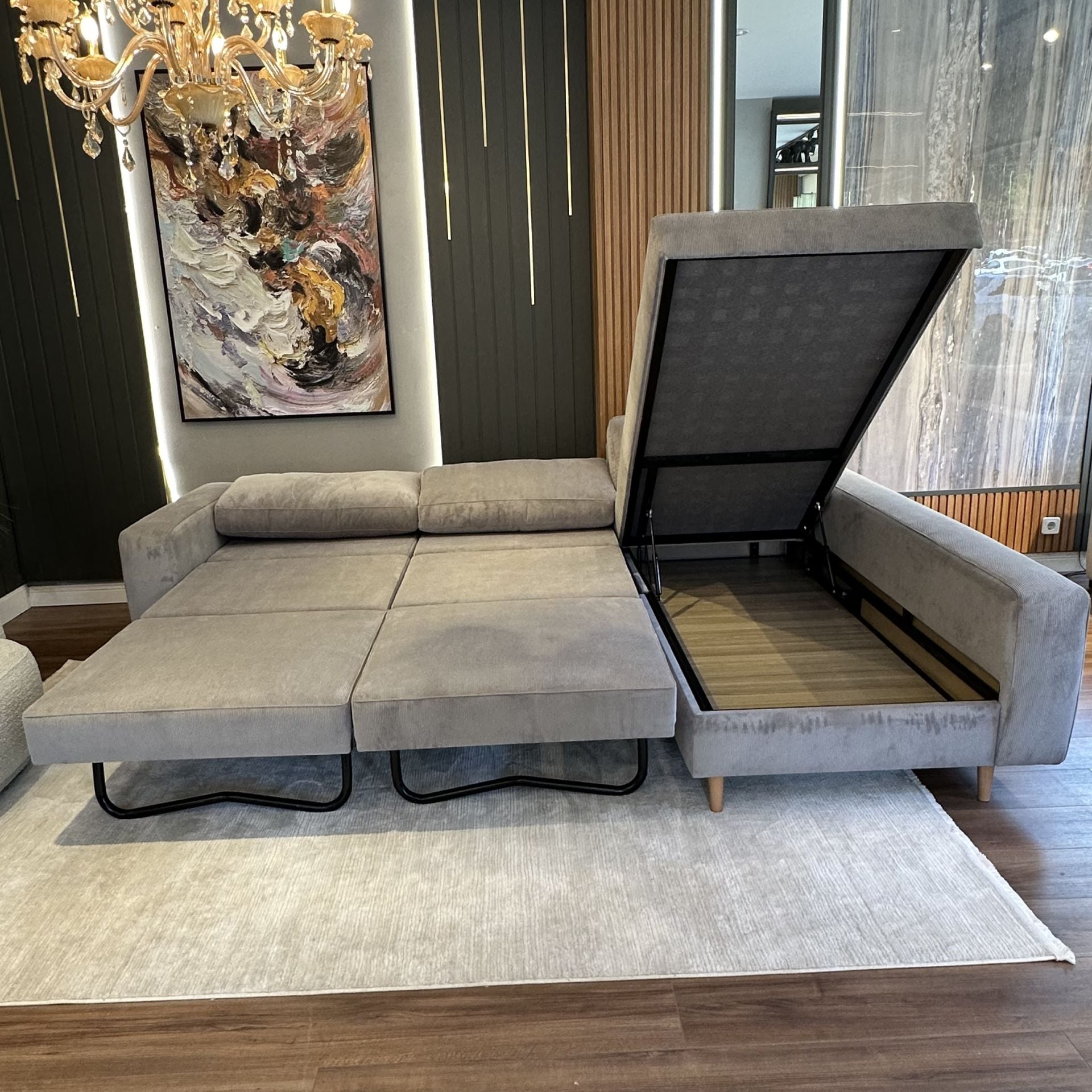 Bu sağlam yapı sayesinde kanepe kolaylıkla açılarak yatak